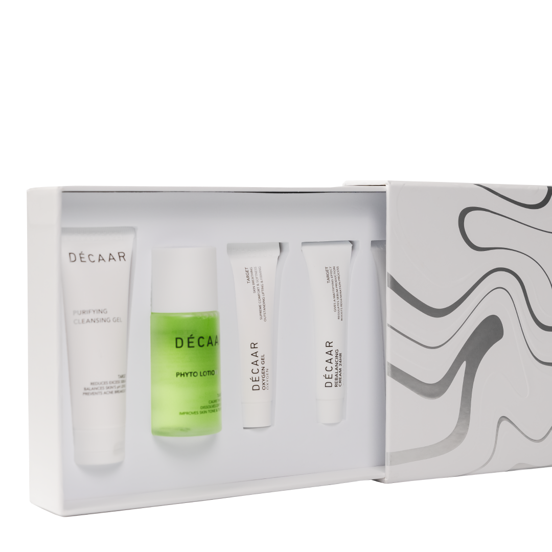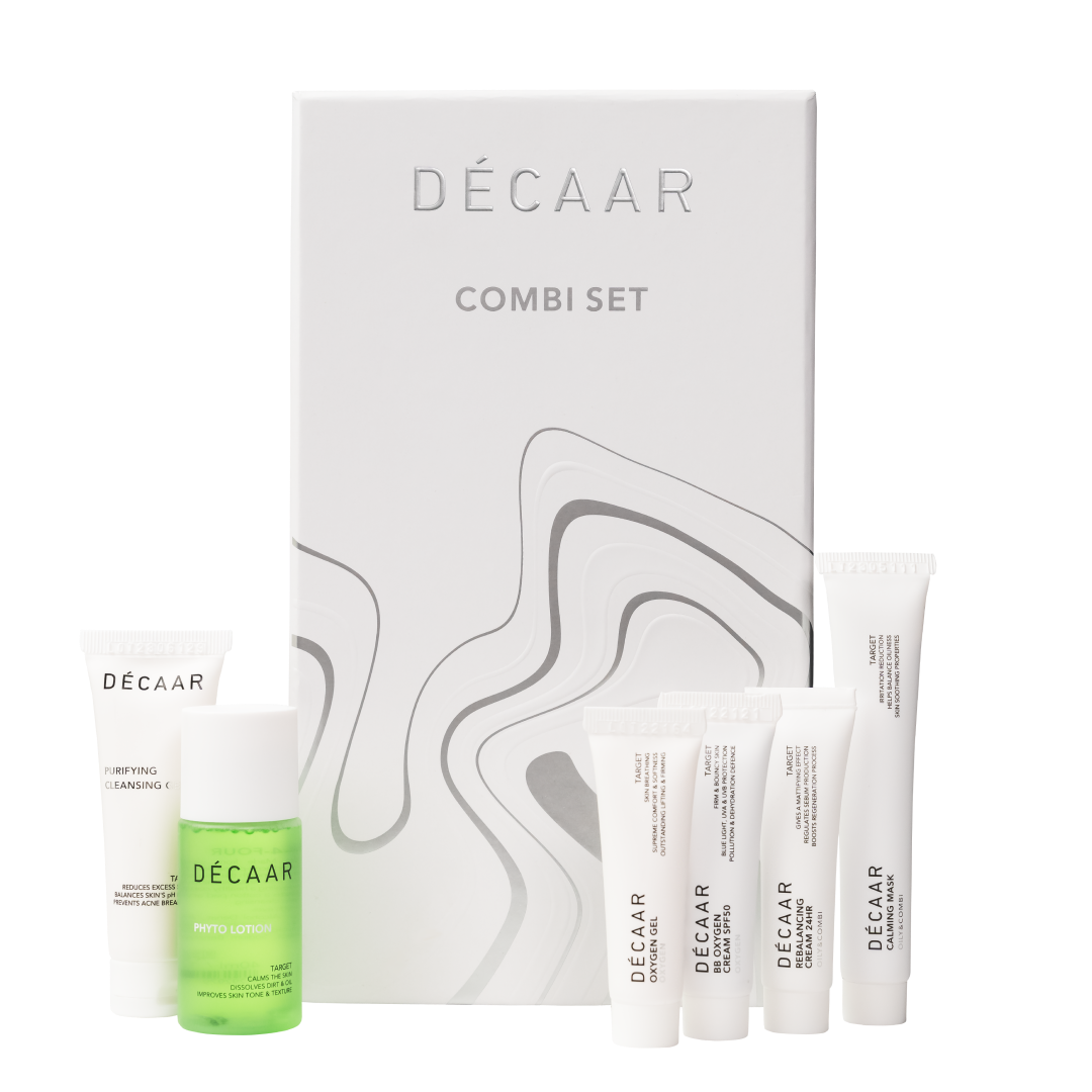 De Try Out Combi Set is een set met Décaar producten die jouw huid helpen bij het herstellen van balans en het tegengaan van onzuiverheden. Perfect om Décaar producten uit te proberen en te genieten van een maand vol luxe huidverzorging. Ontdek de schoonheid van een gezonde huid met de Try Out Combi Set! Geschikt voor de vette, gecombineerde en acné gevoelige huidtypes.